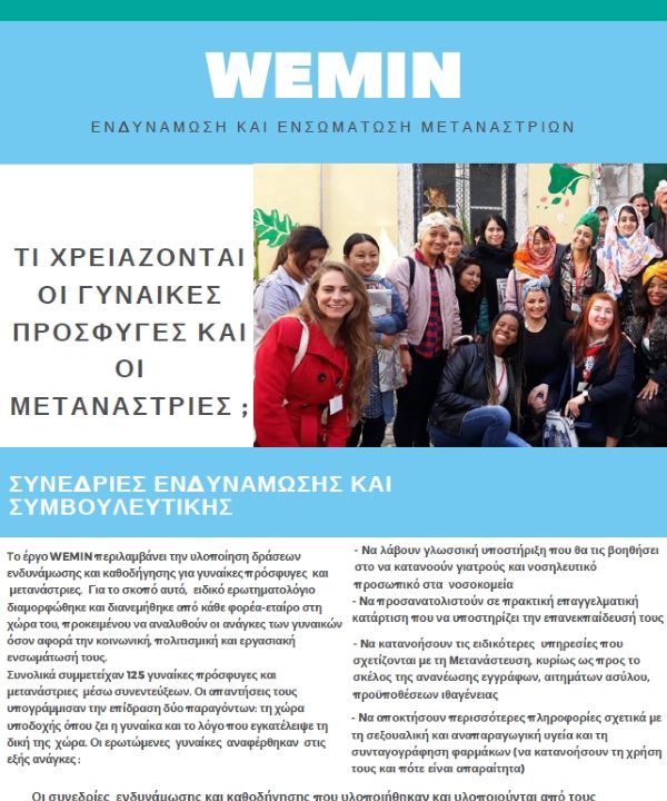 Συνοπτική αναφορά: Το ευρωπαϊκό έργο WEMIN: Migrant Women Empowerment and Integration” (Ενδυνάμωση και Ενσωμάτωση Μεταναστριών)  είναι σε πλήρη εξέλιξη, με στόχο την εφαρμογή και προώθηση ενός […]