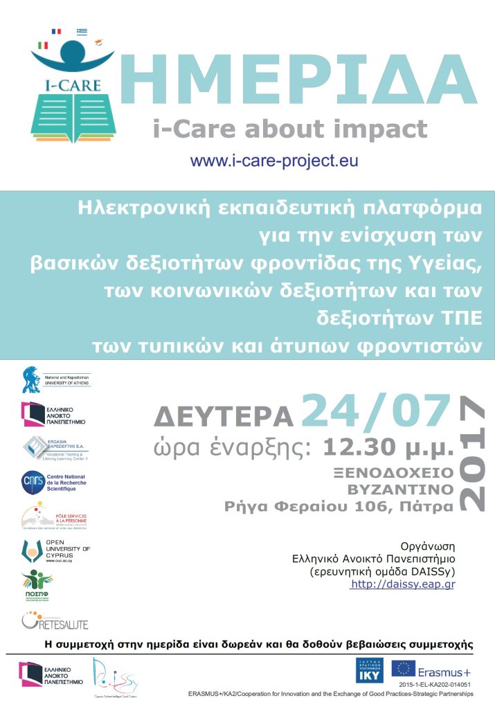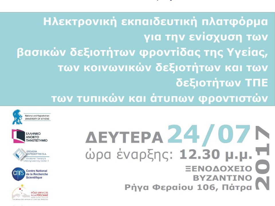 Το Ελληνικό Ανοικτό Πανεπιστήμιο διοργανώνει τη Δευτέρα 24 Ιουλίου 2017, ώρα 12.30 μ.μ., στο ξενοδοχείο Βυζαντινό (Ρήγα Φεραίου 106, Πάτρα) την τελική Ημερίδα διάχυσης των […]