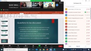 Η πρώτη διαδικτυακή επίσκεψη μελέτης διοργανώθηκε από την ερευνητική ομάδα DAISSy του ΕΑΠ με τη συμμετοχή συνολικά 63 ατόμων, 47 εκ των οποίων ήταν καθηγητές/τριες πανεπιστημίων από χώρες των Δυτικών Βαλκανίων. Την πρώτη ημέρα της επίσκεψης παρουσιάστηκε το μοντέλο λειτουργίας του ΕΑΠ, οι σχετικές ερευνητικές δράσεις της ομάδας DAISSy, καθώς και βασικές πληροφορίες για την εκπαίδευση STEAM και ο τρόπος που αυτή έχει ενσωματωθεί στο Ελληνικό εκπαιδευτικό σύστημα ως τώρα. Τη δεύτερη μέρα αναλύθηκαν παρόμοια μεταπτυχιακά προγράμματα στην Ελλάδα και την Ευρώπη, τα οποία σε συνδυασμό με αποτελέσματα σχετικών ερευνητικών προγραμμάτων που συμμετέχει η ερευνητική ομάδα DAISSy, αποτέλεσαν τη βάση για την προτεινόμενη δομή του ΜΠΣ στην εκπαίδευση STEAM. Ακολούθησε η παρουσίαση των αποτελεσμάτων της ψηφοφορίας, η οποία έγινε πριν την επίσκεψη με τη συμμετοχή του συνόλου των εταίρων του έργου και αφορούσε στην προτεινόμενη δομή του ΜΠΣ. Τέλος, την 3η ημέρα οι συμμετέχοντες στην επίσκεψη χωρίστηκαν σε 4 ομάδες εργασίας και διαμόρφωσαν συνεργατικά τα περιγράμματα 22 μαθημάτων του ΜΠΣ.