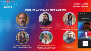 Η εκδήλωση συνδιοργανώθηκε από το ευρωπαϊκό δίκτυο ALL DIGITAL, φορέα εταίρο του Biblio, σε συνεργασία με το εταιρικό σχήμα του έργου, κι εντάχθηκε στην εκστρατεία «All Digital Weeks-ADWs 2022» με στόχο να κεντρίσει το ενδιαφέρον ως προς τα βασικά ευρήματα και παραδοτέα του έργου Biblio μέχρι σήμερα. Προσέλκυσε τη συμμετοχή επαγγελματιών του τομέα της Βιβλιοθήκης, εμπειρογνωμόνων, εκπροσώπων αρχών και ιδρυμάτων, ενεργών πολιτών και γενικότερα όλων όσων ενδιαφέρονται για την ψηφιακή εξέλιξη στον κόσμο της Βιβλιοθήκης.