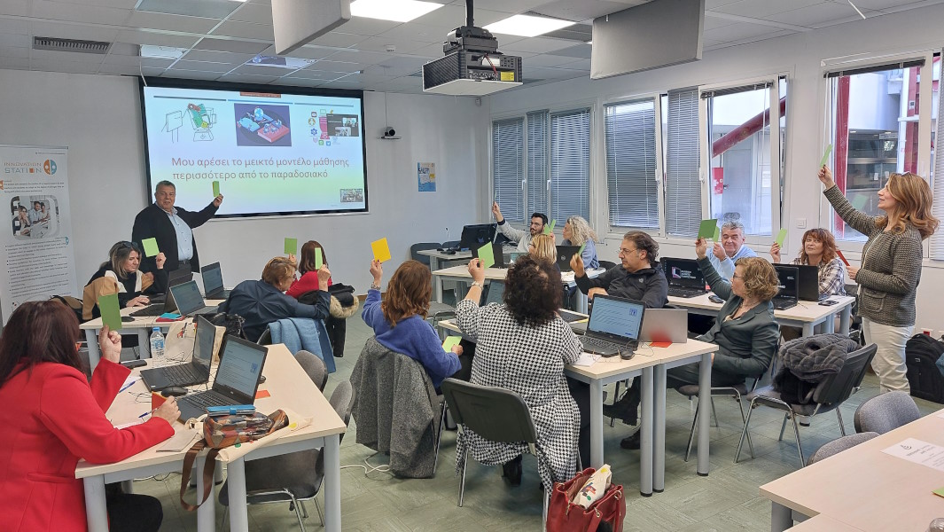 It is noteworthy that the TC of the InnStation project had a laboratory format and was attended by twenty-five (25) teachers of Primary and Secondary Education, who acquired valuable knowledge on the implementation of the blended learning model and self-directed learning in practice. The TC aims at the design of digital material and digital courses, supportive to face-to-face learning, by utilizing tools such as software, applications, platforms and the exchange of European good practices that enhance and cultivate the autonomy of learners.