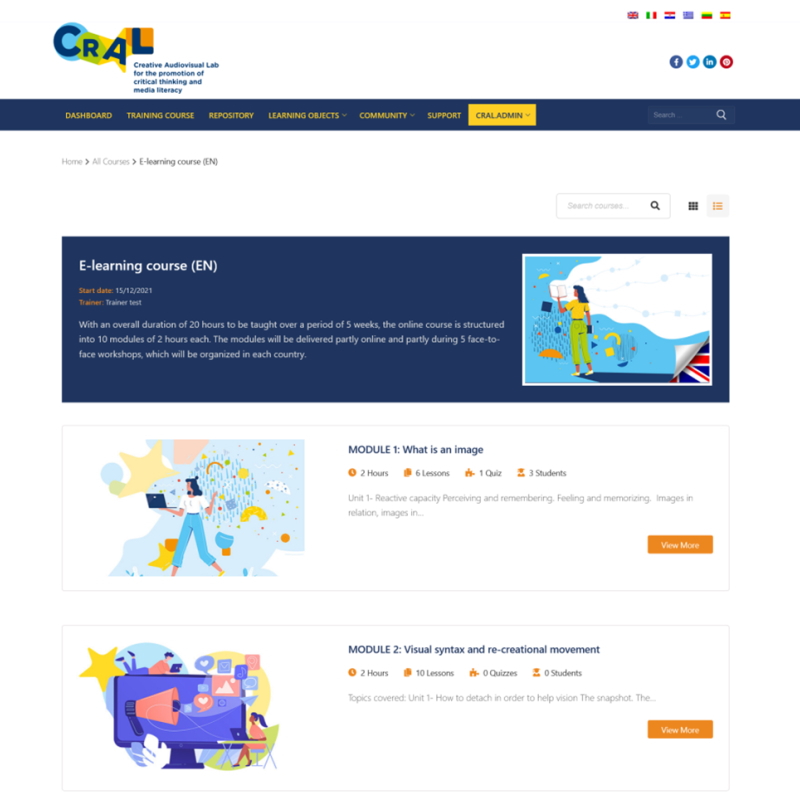 - Screenshot of the modules of the CrAL e-Learning course on the CrAL platform