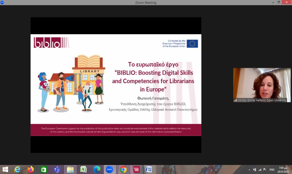 The project addresses the skills gap in the library sector, due to the digital transformation that is changing the role of libraries, by facilitating the acquisition of digital and transversal skills for library professionals. Specifically, by analyzing the training needs and offers of the specific sector, it has identified two emerging job role profiles: the Community Engagement and Communication Officer and the Digital Transformation Facilitator. For each, a modular VET curriculum as well as further educational material has been designed, and a MOOC and a Specialization Training Course, including face-to-face, virtual, project-based and a work-based learning phase, have been developed.